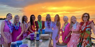 Take in the famous Southwest Florida sunset during the tiki party while cruising the tropical shores of Fort Myers Beach. Our authentic 18 passenger catamaran is the perfect venue for large celebrations and group outings and celebrations. Come aboard the BYOB tiki party and enjoy a cold beverage while cruising the tropical shores watching for dolphins and marine life.